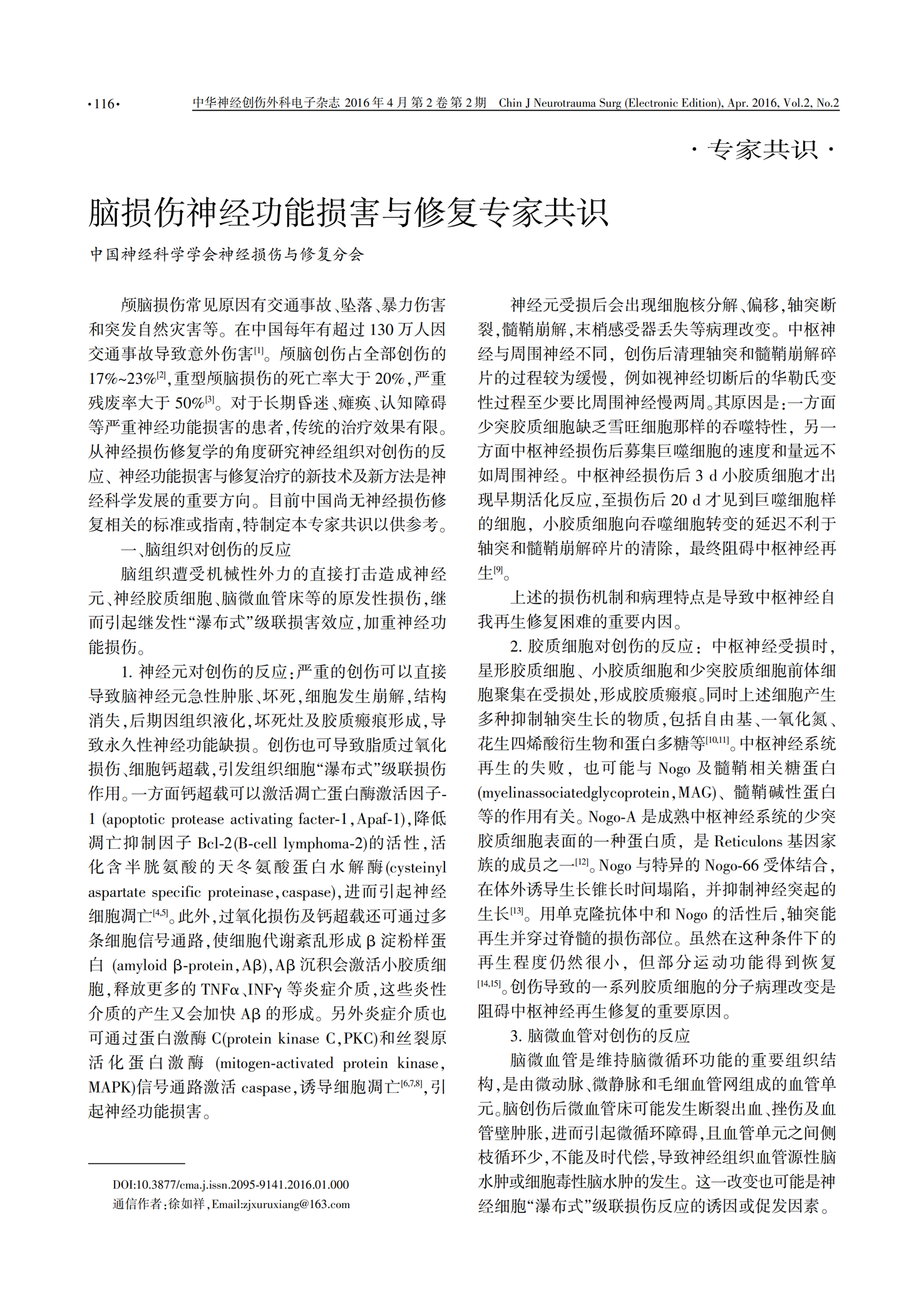 【蘇肽生】2016 腦損傷神經功能損害與修復專家共識
